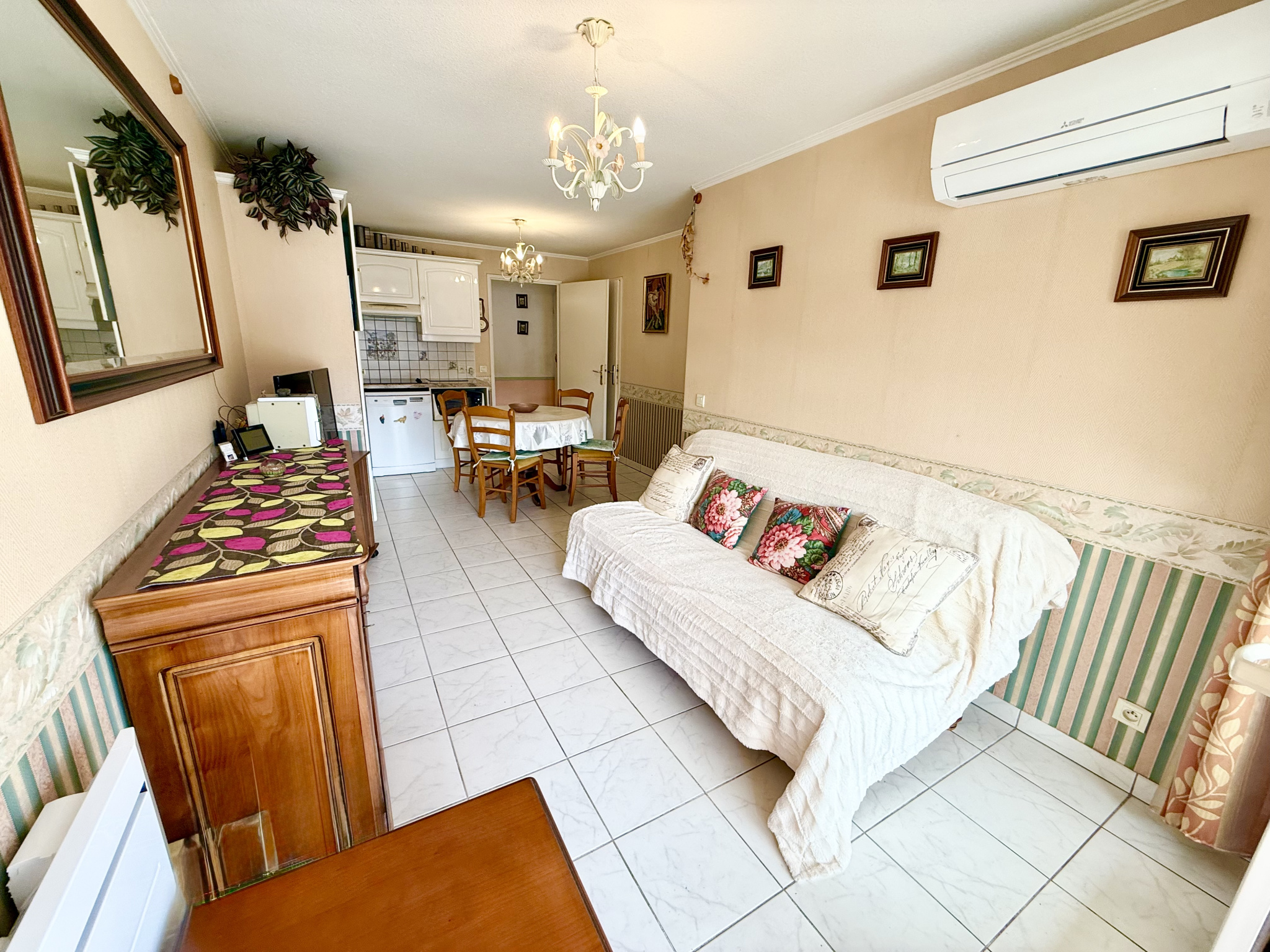L'agence BANDELIER IMMOBILIER vous présente à LE CANNET secteur Palestre un charmant appartement de 2 pièces climatisé d'environ 35 m² avec terrasse de 13,13 m² en étage dans une résidence de standing sécurisée avec piscine. L'appartement se compose d'un hall d'entrée, d'un séjour avec cuisine ouverte de 17,62 m², d'une chambre avec placard de 9,31 m², d'une salle de bains et d'un WC indépendant. L'appartement est au calme avec une vue dégagée. Un garage en sous-sol et une cave. Les honoraires d'agence sont compris de 5.,55% TTC à la charge de l'acquéreur. Charges/an : 1.254 € . DPE : C. Les informations sur les risques auxquels ce bien est exposé sont disponibles sur le site : https://www.georisques.gouv.fr.