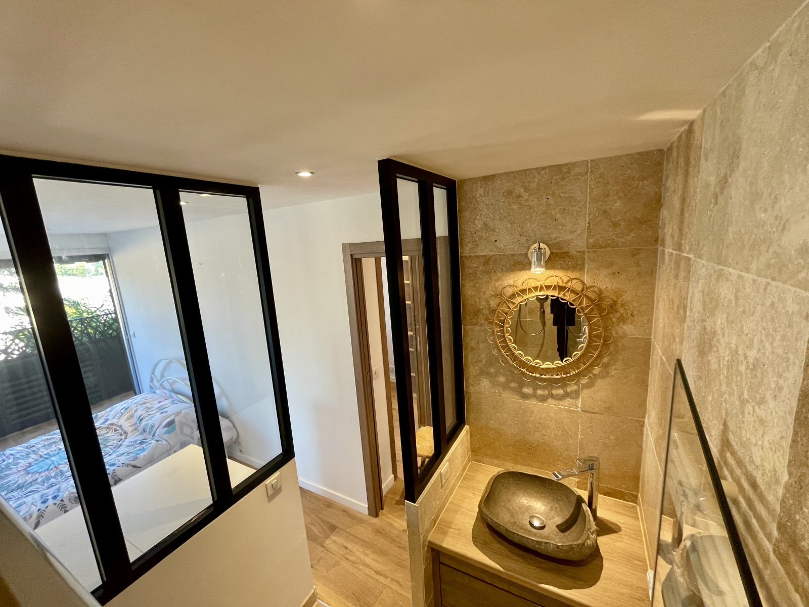 Au Cannet résidentiel, en exclusivité, à proximité de toutes les commodités, dans une résidence sécurisée avec piscine, très agréable 2/3 pièces rénové de 57.34 m² certifiés en rez de jardin surelevé. L'appartement, au calme, se compose d'un hall avec beau rangement, un grand séjour de 26.21 m2 exposé à l' sud-Est avec une cuisine ouverte équipée, une chambre avec salle de douche et penderie de rangement, une chambre/bureau, un WC indépendant et une belle terrasse prolongé d'un petit jardin de 18 m2 et un balcon à l'Ouest de 10 m2. Une cave et un parking intérieur au sous sol. Honoraires inclus à la charge de l'acquéreur 5 % TTC. charges collectives 852 € par trimestre comprenant chauffage, eau chaude et eau froide. Les informations sur les risques auxquels ce bien est exposé sont disponibles sur le site Géorisques : https://www.georisques.gouv.fr/