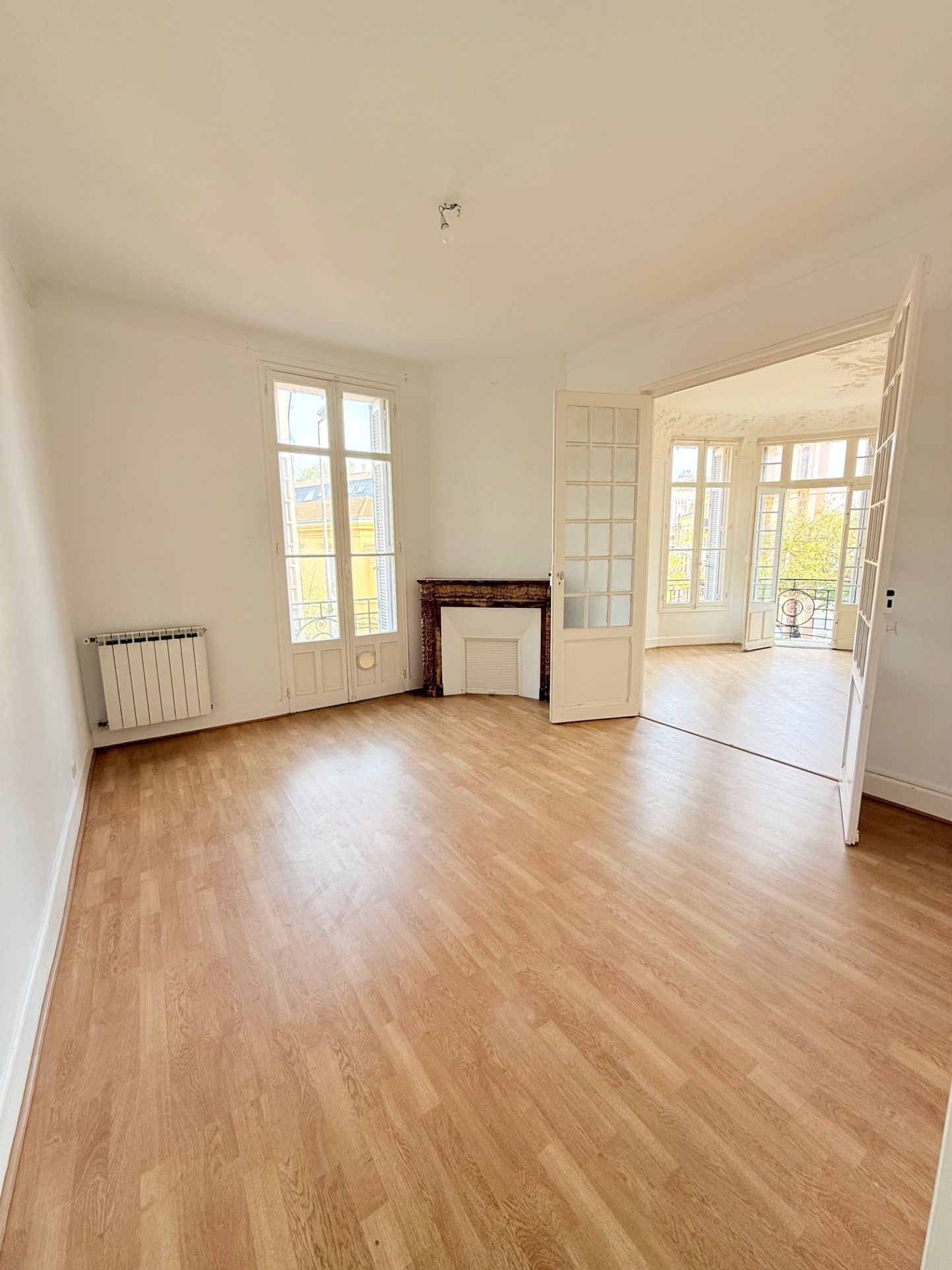 - trois appartements vides en étage de 65 m2, 50 m2 et 65 m2 avec de très beaux volumes et un fort potentiel d'aménagement avec une belle hauteur sous plafond avec moulures apportant charme et confort.